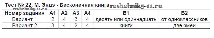 Готовая домашняя работа с ответами по Литературе за 6 класс Королева Контрольно-измерительные материалы (КИМ) ВАКО 2015 ФГОС - Тесты Тест №22. Бесконечная книга