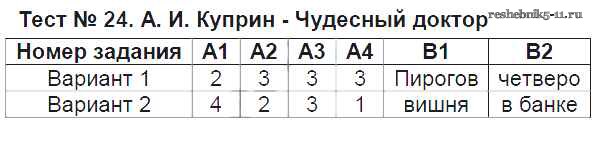 Готовая домашняя работа с ответами по Литературе за 6 класс Королева Контрольно-измерительные материалы (КИМ) ВАКО 2015 ФГОС - Тесты Тест №24. Чудесный доктор