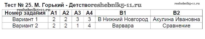 Готовая домашняя работа с ответами по Литературе за 6 класс Королева Контрольно-измерительные материалы (КИМ) ВАКО 2015 ФГОС - Тесты Тест №25. Детство