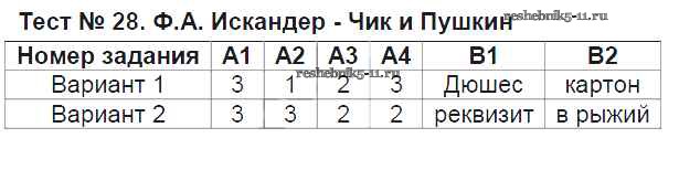 Готовая домашняя работа с ответами по Литературе за 6 класс Королева Контрольно-измерительные материалы (КИМ) ВАКО 2015 ФГОС - Тесты Тест №28. Чик и Пушкин