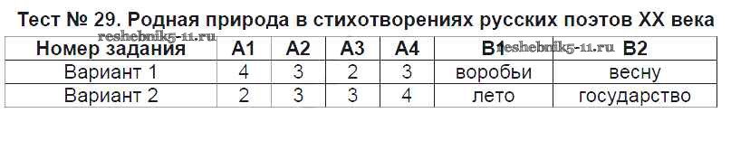 Готовая домашняя работа с ответами по Литературе за 6 класс Королева Контрольно-измерительные материалы (КИМ) ВАКО 2015 ФГОС - Тесты Тест №29. Родная природа в стихотворениях русских поэтов ХХ века