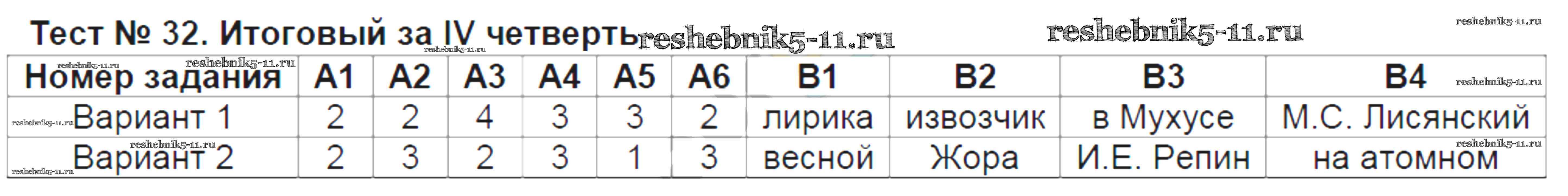 Готовая домашняя работа с ответами по Литературе за 6 класс Королева Контрольно-измерительные материалы (КИМ) ВАКО 2015 ФГОС - Тесты Тест №32. Итоговый за IV четверть
