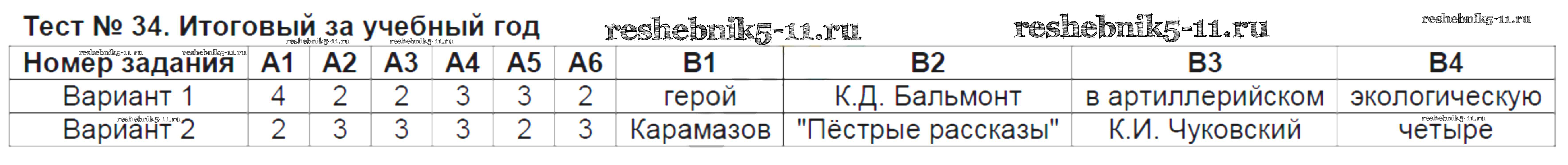 Готовая домашняя работа с ответами по Литературе за 6 класс Королева Контрольно-измерительные материалы (КИМ) ВАКО 2015 ФГОС - Тесты Тест №34. Итоговый за учебный год