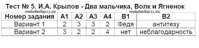 Готовая домашняя работа с ответами по Литературе за 6 класс Королева Контрольно-измерительные материалы (КИМ) ВАКО 2015 ФГОС - Тесты Тест №5. Два мальчика, Волк и Ягненок