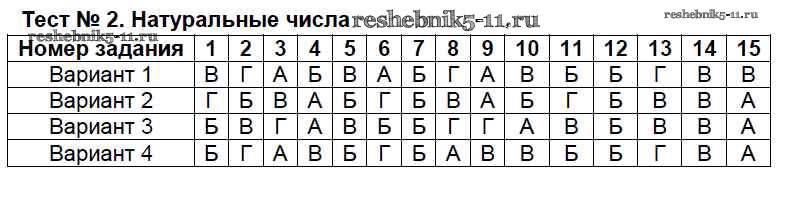 Готовая домашняя работа с ответами по Математике за 5, 6 класс Тульчинская Тесты УМК Мнемозина 2015 ФГОС - Тесты Тест №2. Натуральные числа