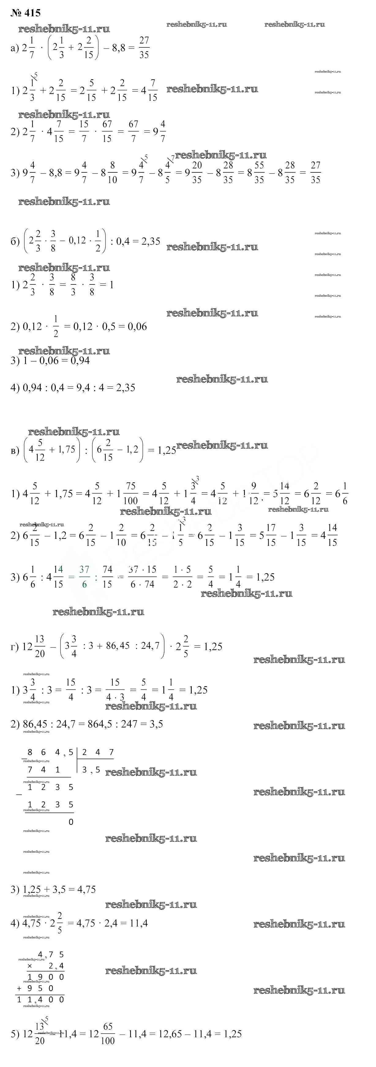 Готовая домашняя работа с ответами по Математике за 6 класс Герасимов, Пирютко Учебник Образование и воспитание 2018 - Упражнения 415