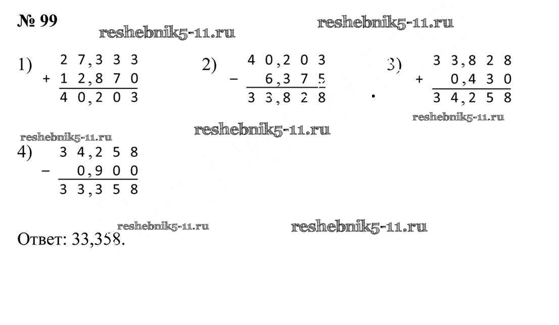 Готовая домашняя работа с ответами по Математике за 6 класс Герасимов, Пирютко Учебник Образование и воспитание 2018 - Упражнения 99
