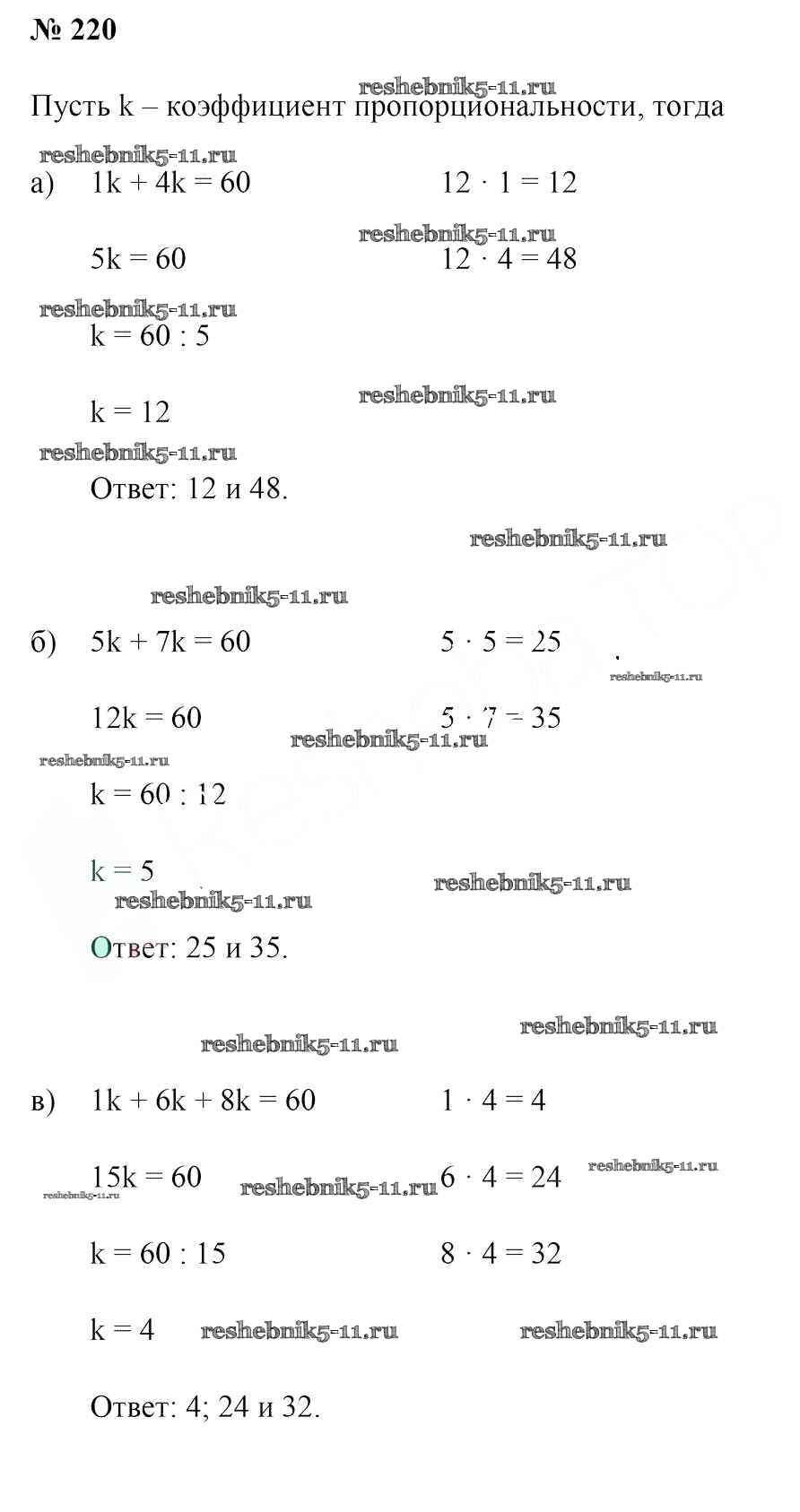 Готовая домашняя работа с ответами по Математике за 6 класс Герасимов, Пирютко Учебник Образование и воспитание 2018 - Упражнения 220