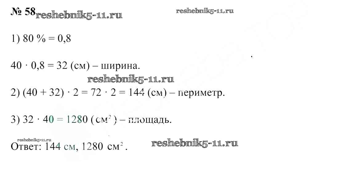 Готовая домашняя работа с ответами по Математике за 6 класс Герасимов, Пирютко Учебник Образование и воспитание 2018 - Упражнения 58