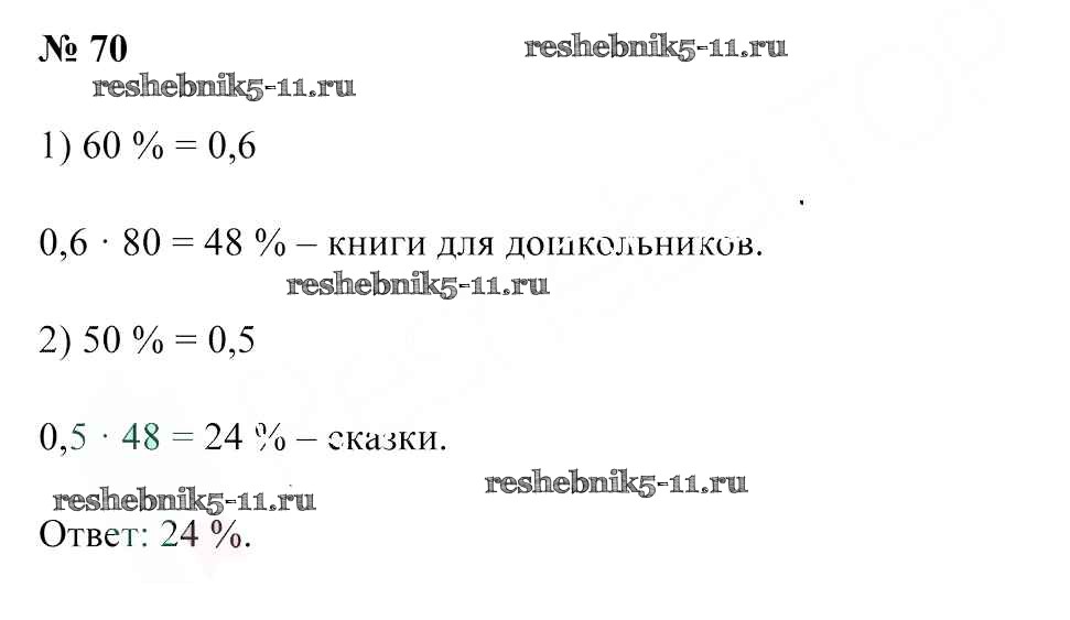 Готовая домашняя работа с ответами по Математике за 6 класс Герасимов, Пирютко Учебник Образование и воспитание 2018 - Упражнения 70