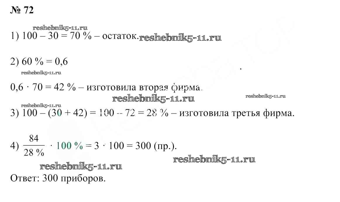 Готовая домашняя работа с ответами по Математике за 6 класс Герасимов, Пирютко Учебник Образование и воспитание 2018 - Упражнения 72