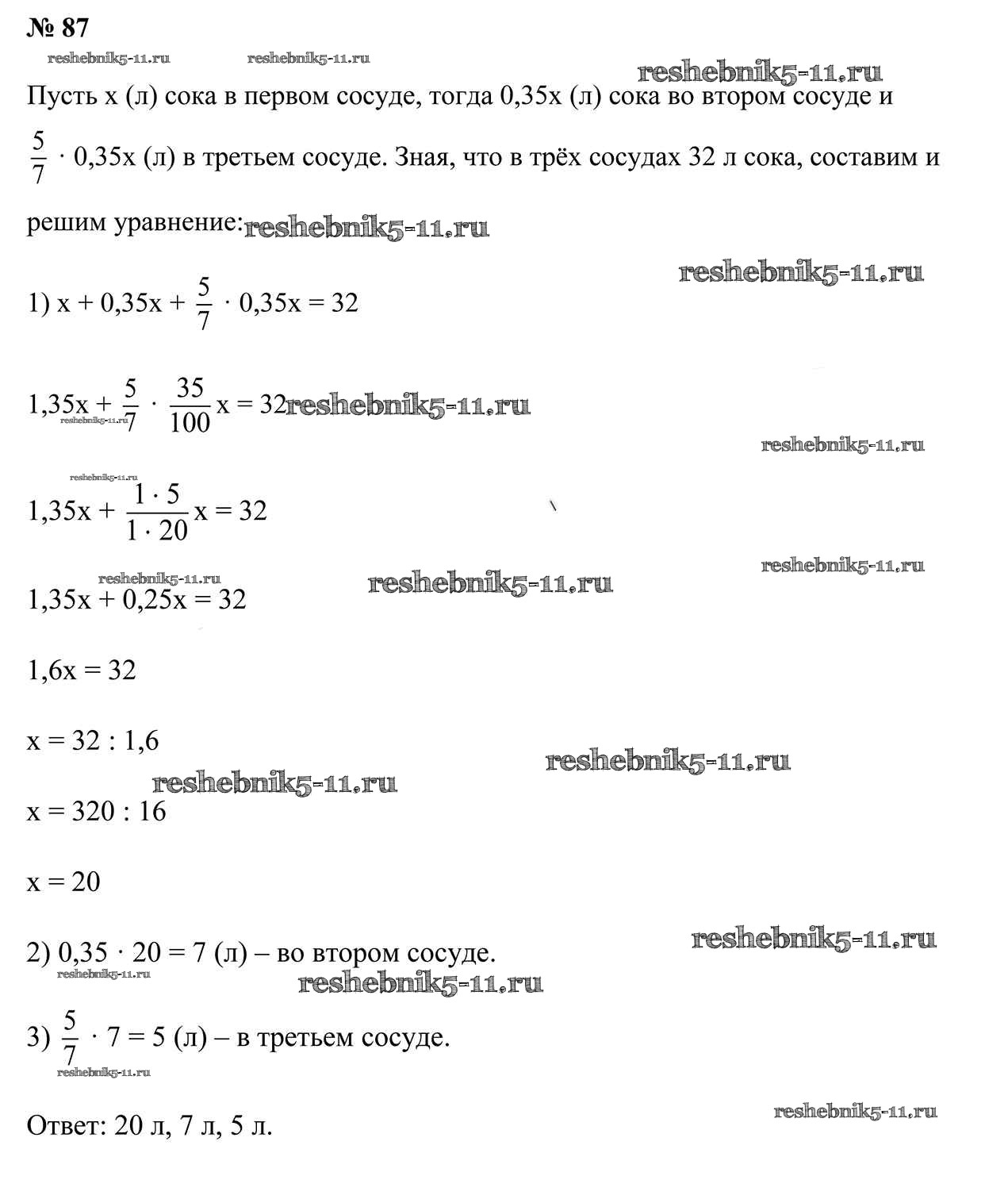 Готовая домашняя работа с ответами по Математике за 6 класс Герасимов, Пирютко Учебник Образование и воспитание 2018 - Упражнения 87