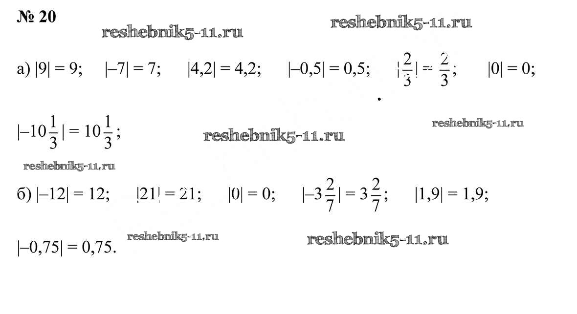 Готовая домашняя работа с ответами по Математике за 6 класс Герасимов, Пирютко Учебник Образование и воспитание 2018 - Упражнения 20