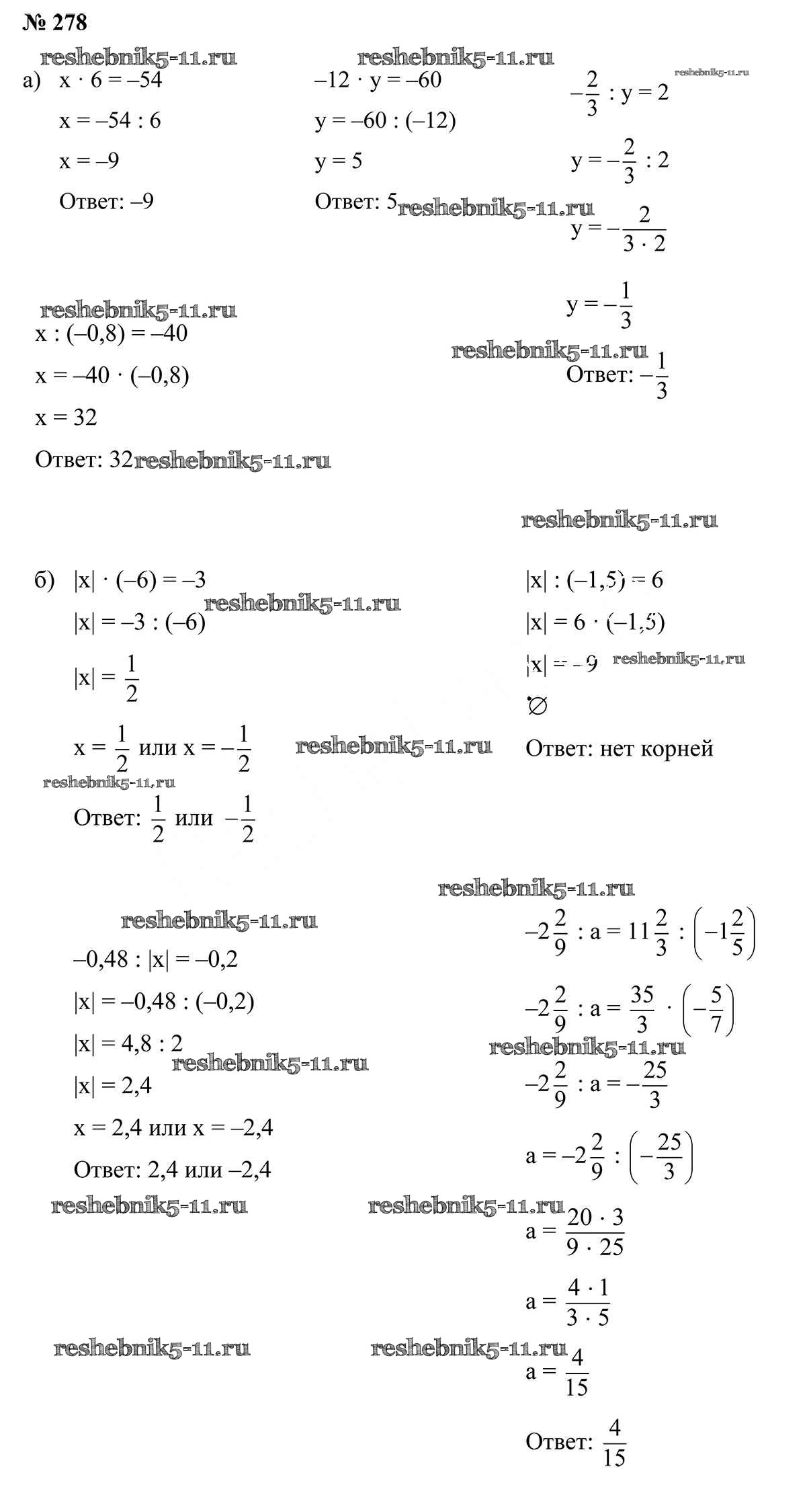 Готовая домашняя работа с ответами по Математике за 6 класс Герасимов, Пирютко Учебник Образование и воспитание 2018 - Упражнения 278