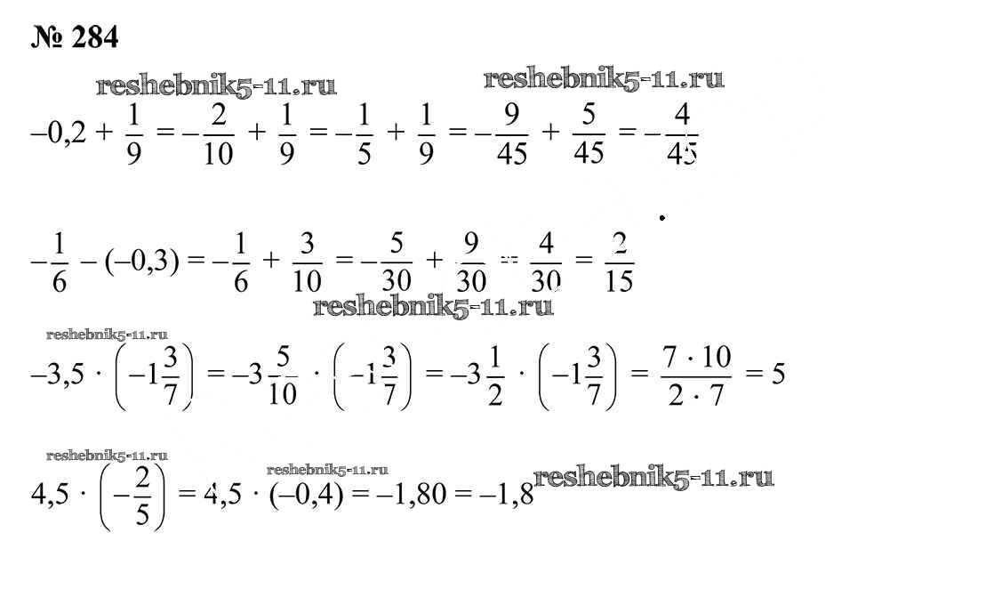 Готовая домашняя работа с ответами по Математике за 6 класс Герасимов, Пирютко Учебник Образование и воспитание 2018 - Упражнения 284