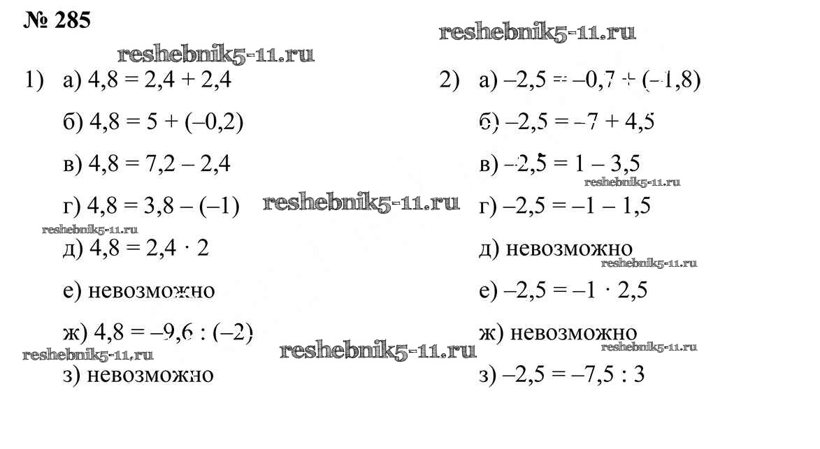 Готовая домашняя работа с ответами по Математике за 6 класс Герасимов, Пирютко Учебник Образование и воспитание 2018 - Упражнения 285