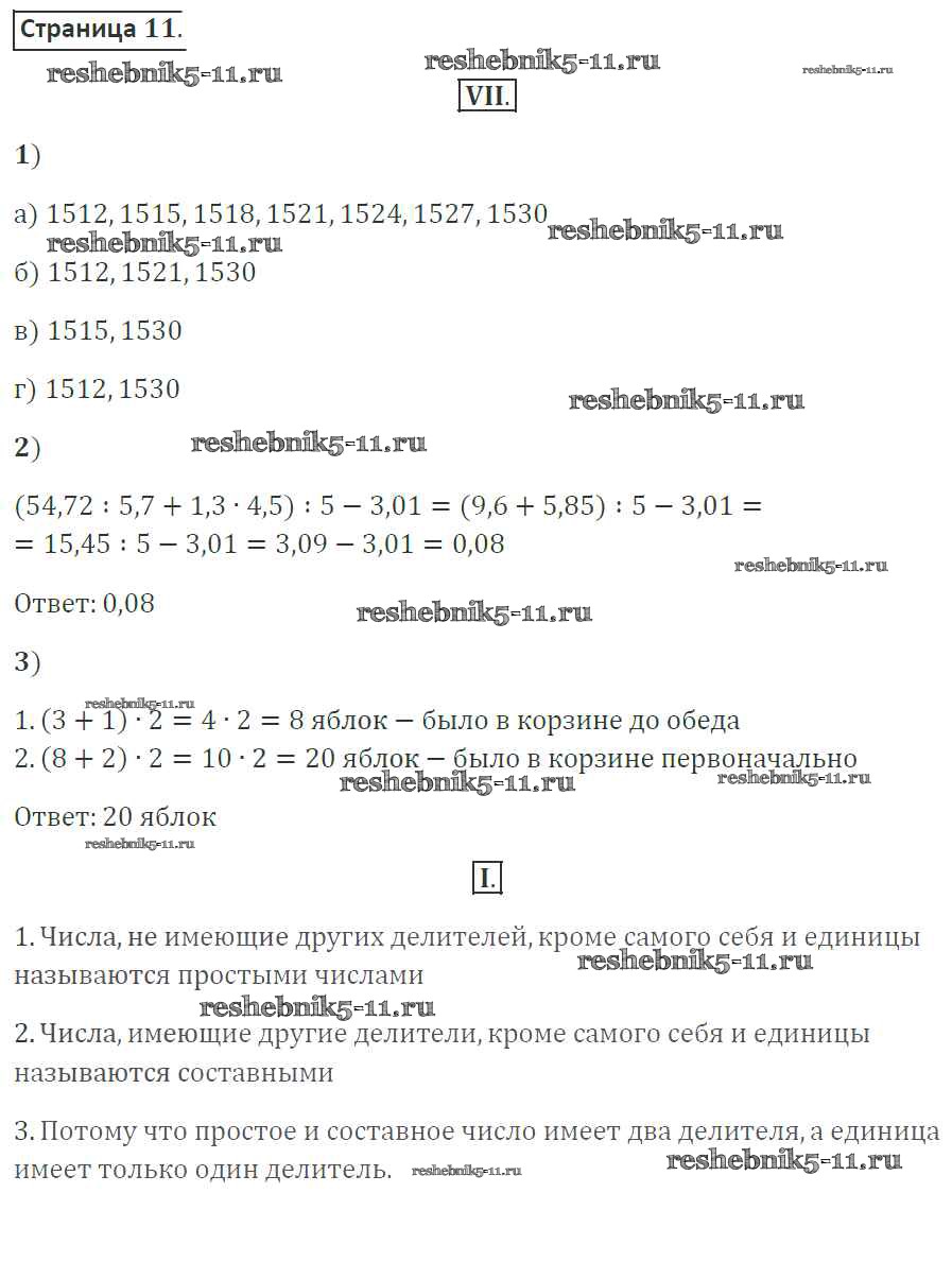 Готовая домашняя работа с ответами по Математике за 6 класс Ерина Рабочая тетрадь УМК Часть 1, 2 Экзамен 2017 ФГОС - Часть 1. Страницы 11