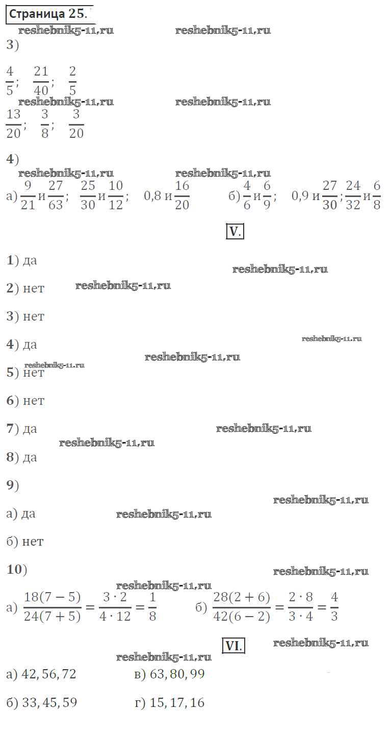 Готовая домашняя работа с ответами по Математике за 6 класс Ерина Рабочая тетрадь УМК Часть 1, 2 Экзамен 2017 ФГОС - Часть 1. Страницы 25