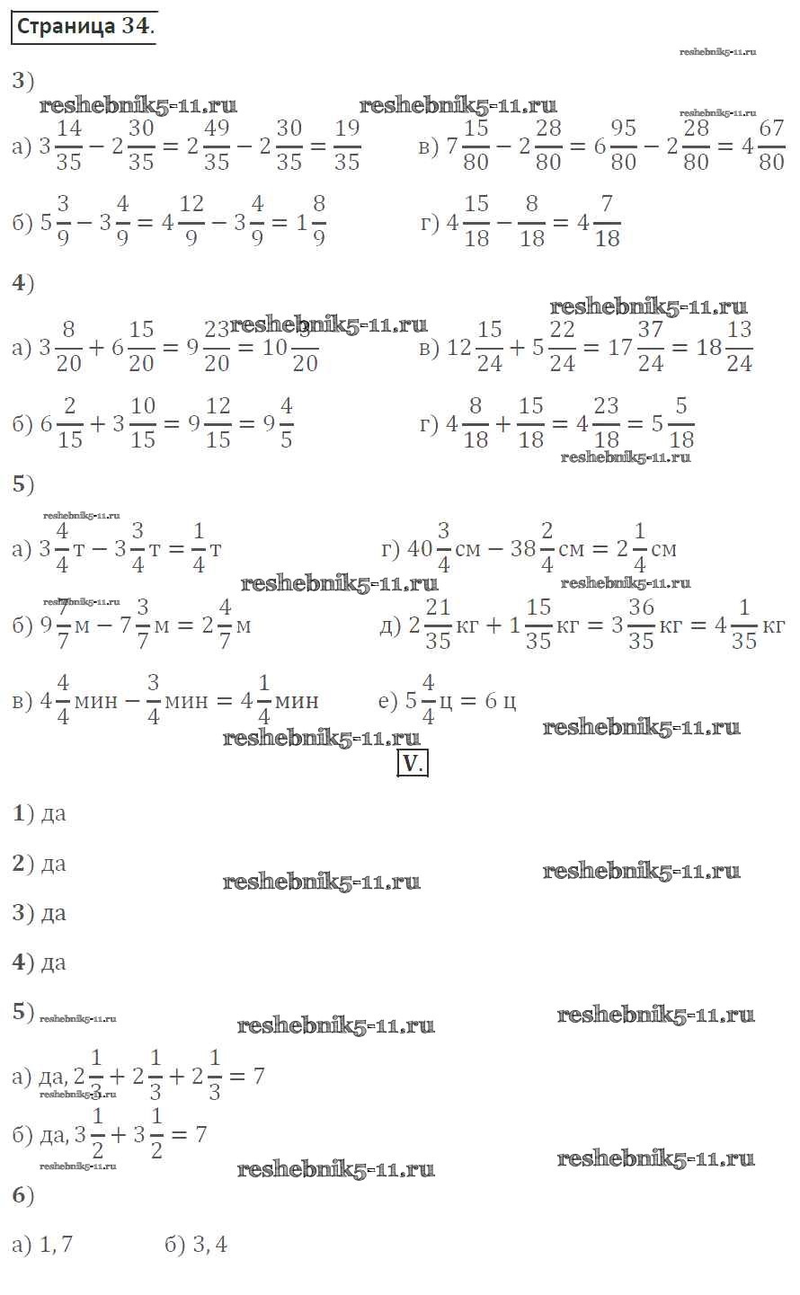 Готовая домашняя работа с ответами по Математике за 6 класс Ерина Рабочая тетрадь УМК Часть 1, 2 Экзамен 2017 ФГОС - Часть 1. Страницы 34