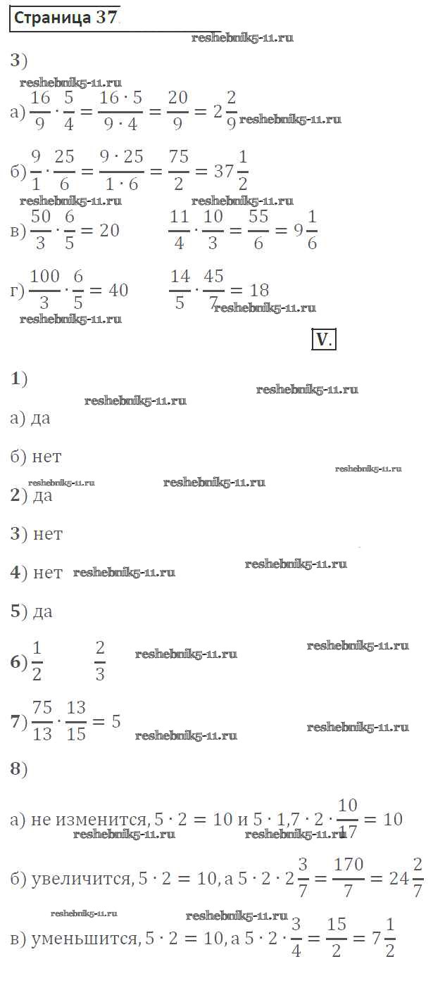 Готовая домашняя работа с ответами по Математике за 6 класс Ерина Рабочая тетрадь УМК Часть 1, 2 Экзамен 2017 ФГОС - Часть 1. Страницы 37