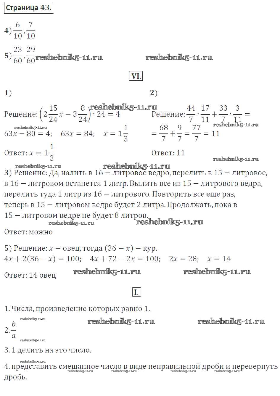 Готовая домашняя работа с ответами по Математике за 6 класс Ерина Рабочая тетрадь УМК Часть 1, 2 Экзамен 2017 ФГОС - Часть 1. Страницы 43