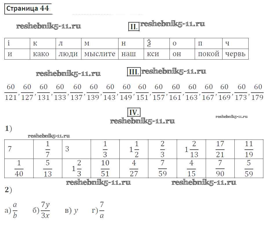 Готовая домашняя работа с ответами по Математике за 6 класс Ерина Рабочая тетрадь УМК Часть 1, 2 Экзамен 2017 ФГОС - Часть 1. Страницы 44