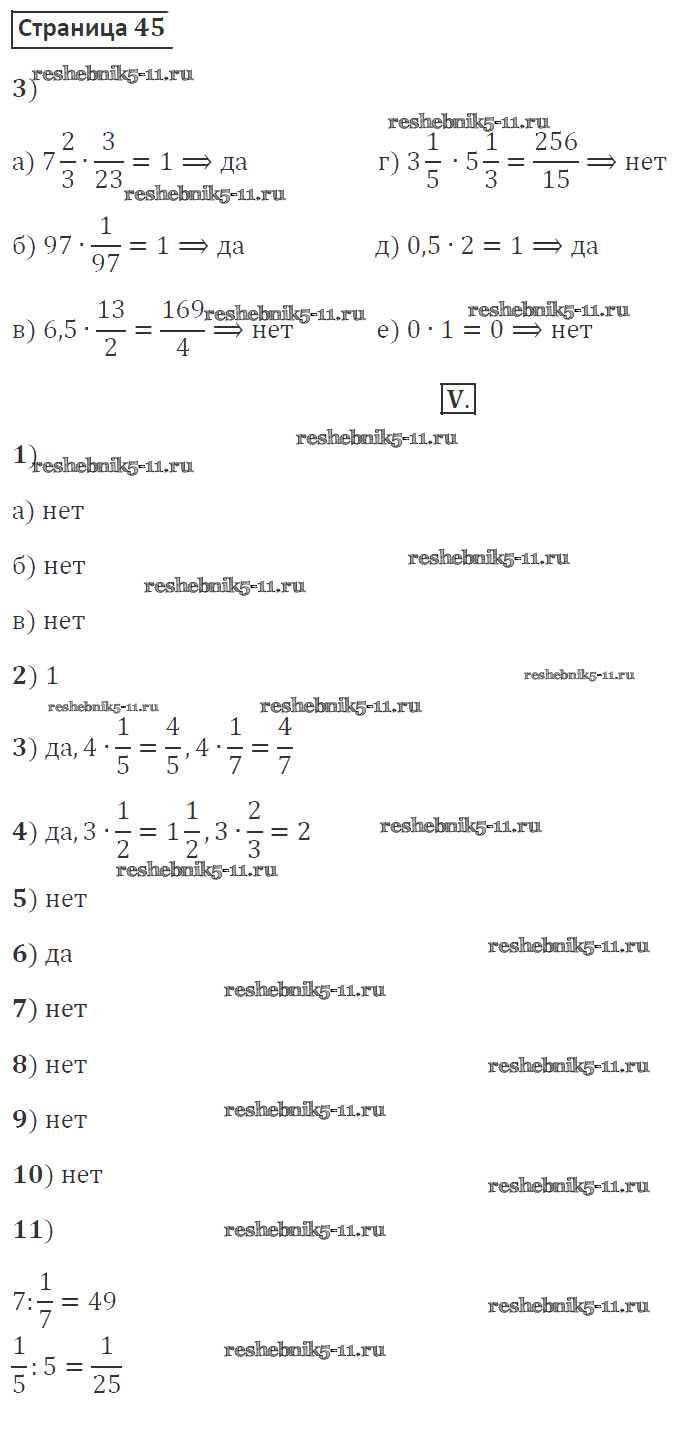 Готовая домашняя работа с ответами по Математике за 6 класс Ерина Рабочая тетрадь УМК Часть 1, 2 Экзамен 2017 ФГОС - Часть 1. Страницы 45