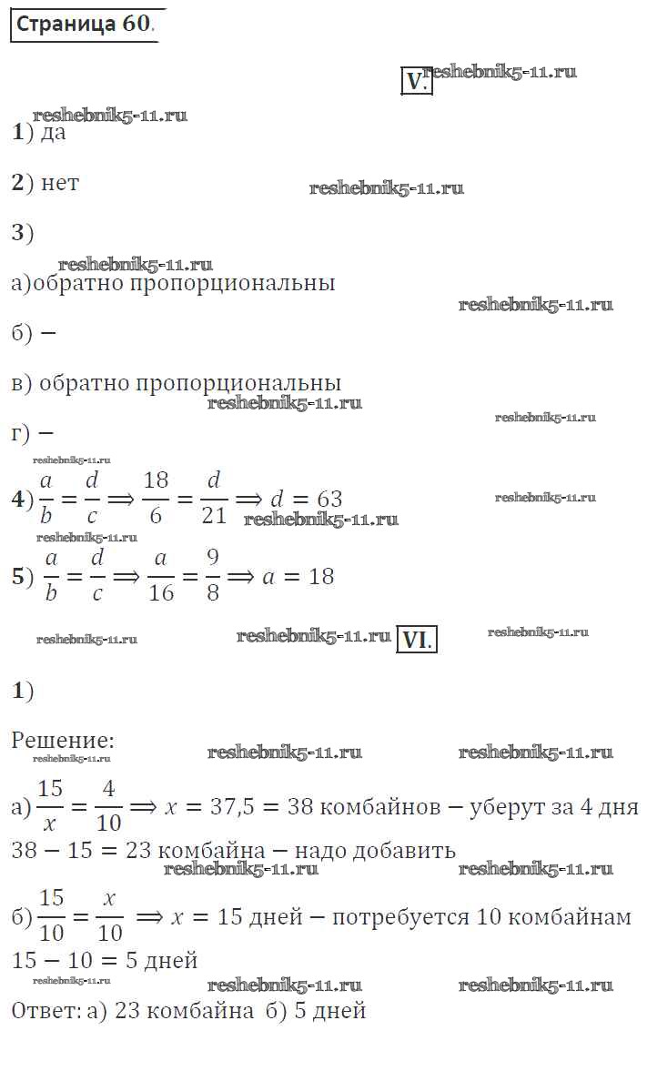 Готовая домашняя работа с ответами по Математике за 6 класс Ерина Рабочая тетрадь УМК Часть 1, 2 Экзамен 2017 ФГОС - Часть 1. Страницы 60