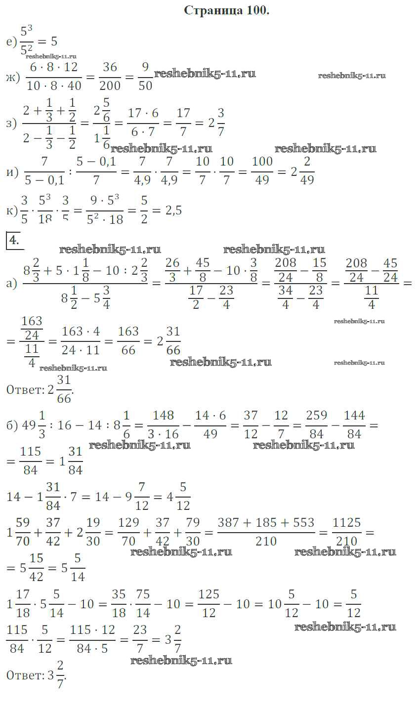 Готовая домашняя работа с ответами по Математике за 6 класс Ерина Рабочая тетрадь УМК Экзамен 2013 ФГОС - Страницы 100