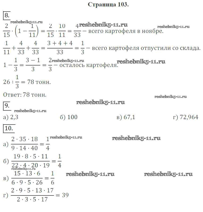 Готовая домашняя работа с ответами по Математике за 6 класс Ерина Рабочая тетрадь УМК Экзамен 2013 ФГОС - Страницы 103