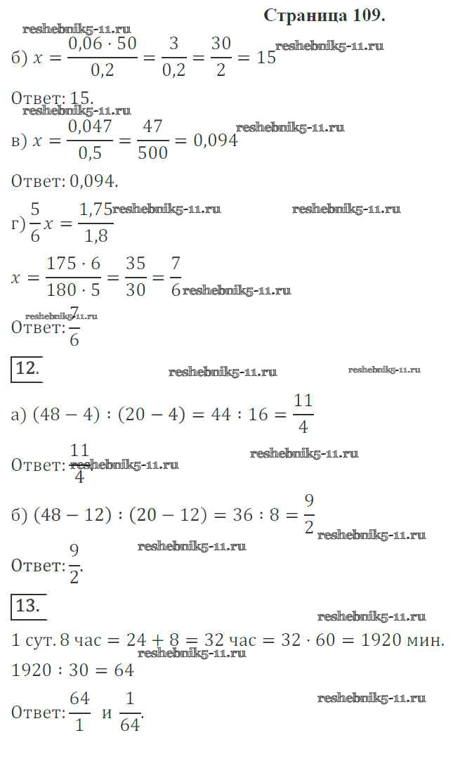 Готовая домашняя работа с ответами по Математике за 6 класс Ерина Рабочая тетрадь УМК Экзамен 2013 ФГОС - Страницы 109