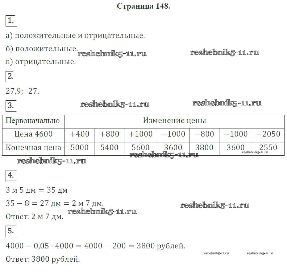 Готовая домашняя работа с ответами по Математике за 6 класс Ерина Рабочая тетрадь УМК Экзамен 2013 ФГОС - Страницы 148