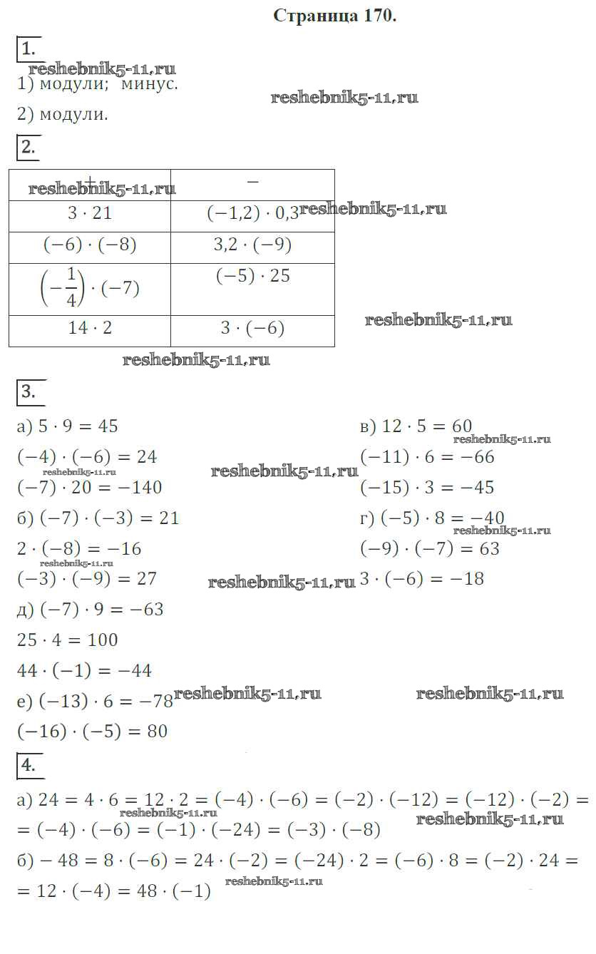 Готовая домашняя работа с ответами по Математике за 6 класс Ерина Рабочая тетрадь УМК Экзамен 2013 ФГОС - Страницы 170