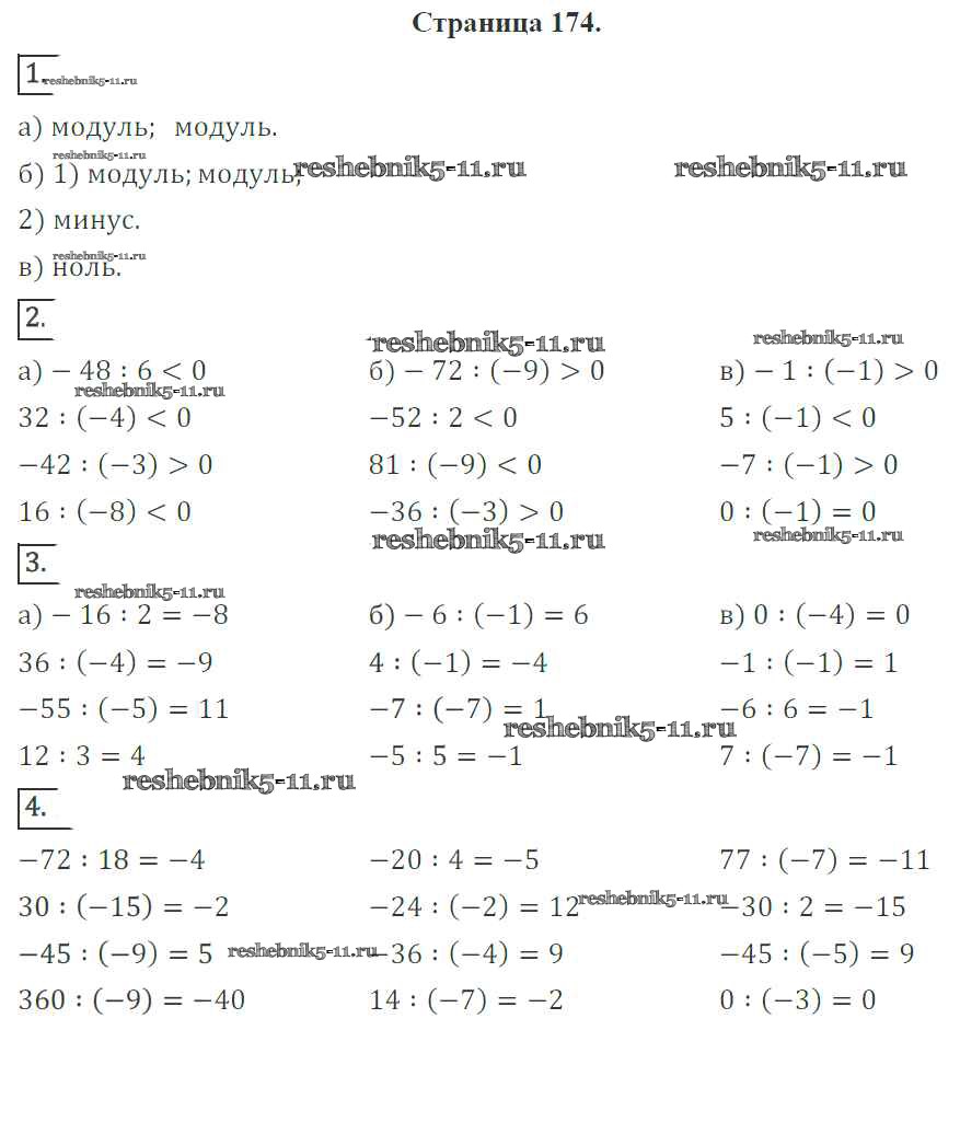 Готовая домашняя работа с ответами по Математике за 6 класс Ерина Рабочая тетрадь УМК Экзамен 2013 ФГОС - Страницы 174