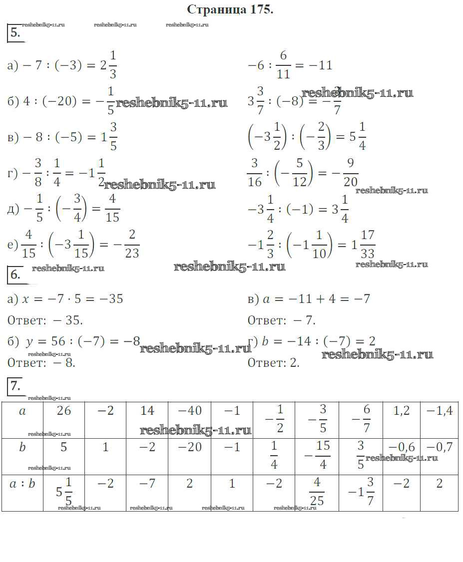 Готовая домашняя работа с ответами по Математике за 6 класс Ерина Рабочая тетрадь УМК Экзамен 2013 ФГОС - Страницы 175