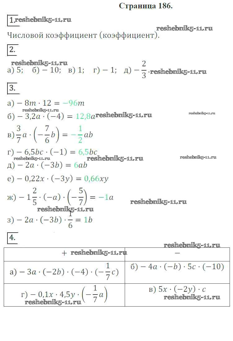 Готовая домашняя работа с ответами по Математике за 6 класс Ерина Рабочая тетрадь УМК Экзамен 2013 ФГОС - Страницы 186