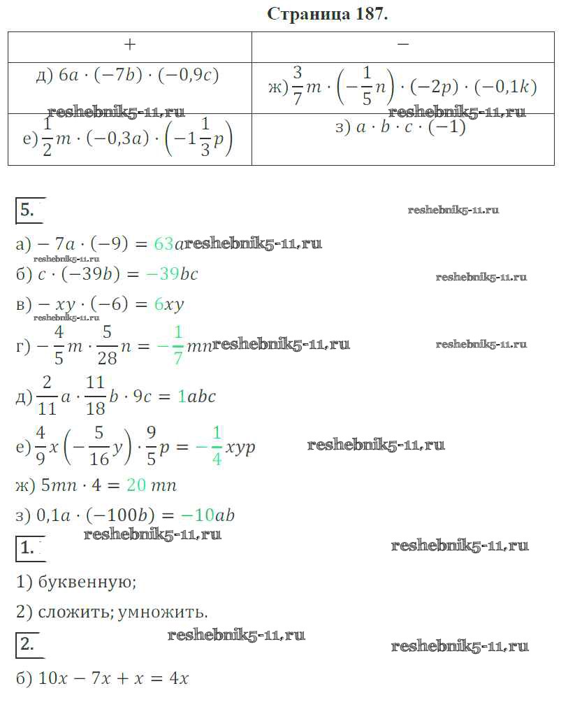 Готовая домашняя работа с ответами по Математике за 6 класс Ерина Рабочая тетрадь УМК Экзамен 2013 ФГОС - Страницы 187