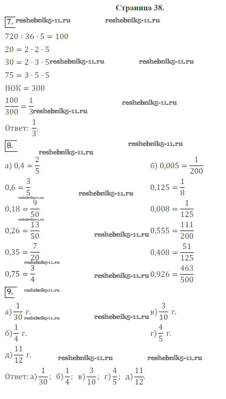 Готовая домашняя работа с ответами по Математике за 6 класс Ерина Рабочая тетрадь УМК Экзамен 2013 ФГОС - Страницы 38