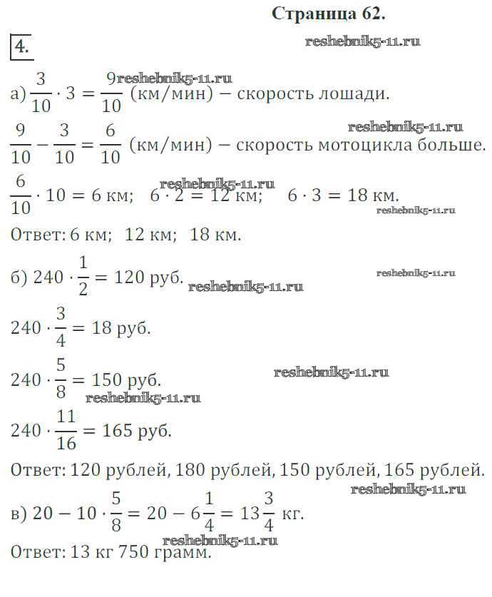 Готовая домашняя работа с ответами по Математике за 6 класс Ерина Рабочая тетрадь УМК Экзамен 2013 ФГОС - Страницы 62