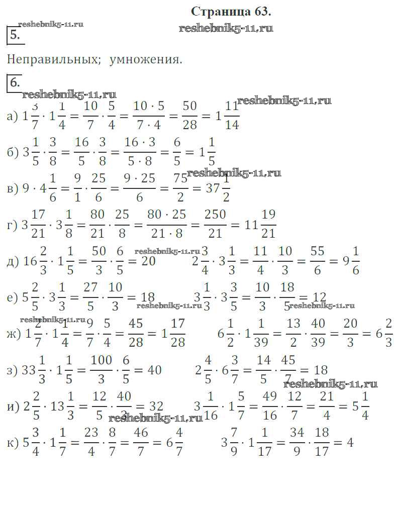 Готовая домашняя работа с ответами по Математике за 6 класс Ерина Рабочая тетрадь УМК Экзамен 2013 ФГОС - Страницы 63