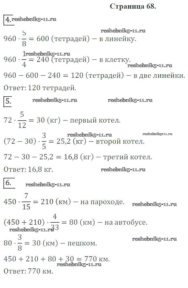 Готовая домашняя работа с ответами по Математике за 6 класс Ерина Рабочая тетрадь УМК Экзамен 2013 ФГОС - Страницы 68