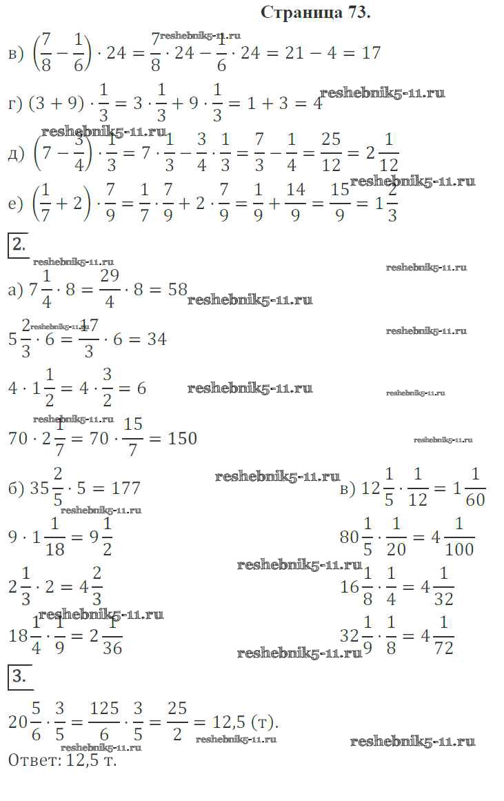 Готовая домашняя работа с ответами по Математике за 6 класс Ерина Рабочая тетрадь УМК Экзамен 2013 ФГОС - Страницы 73