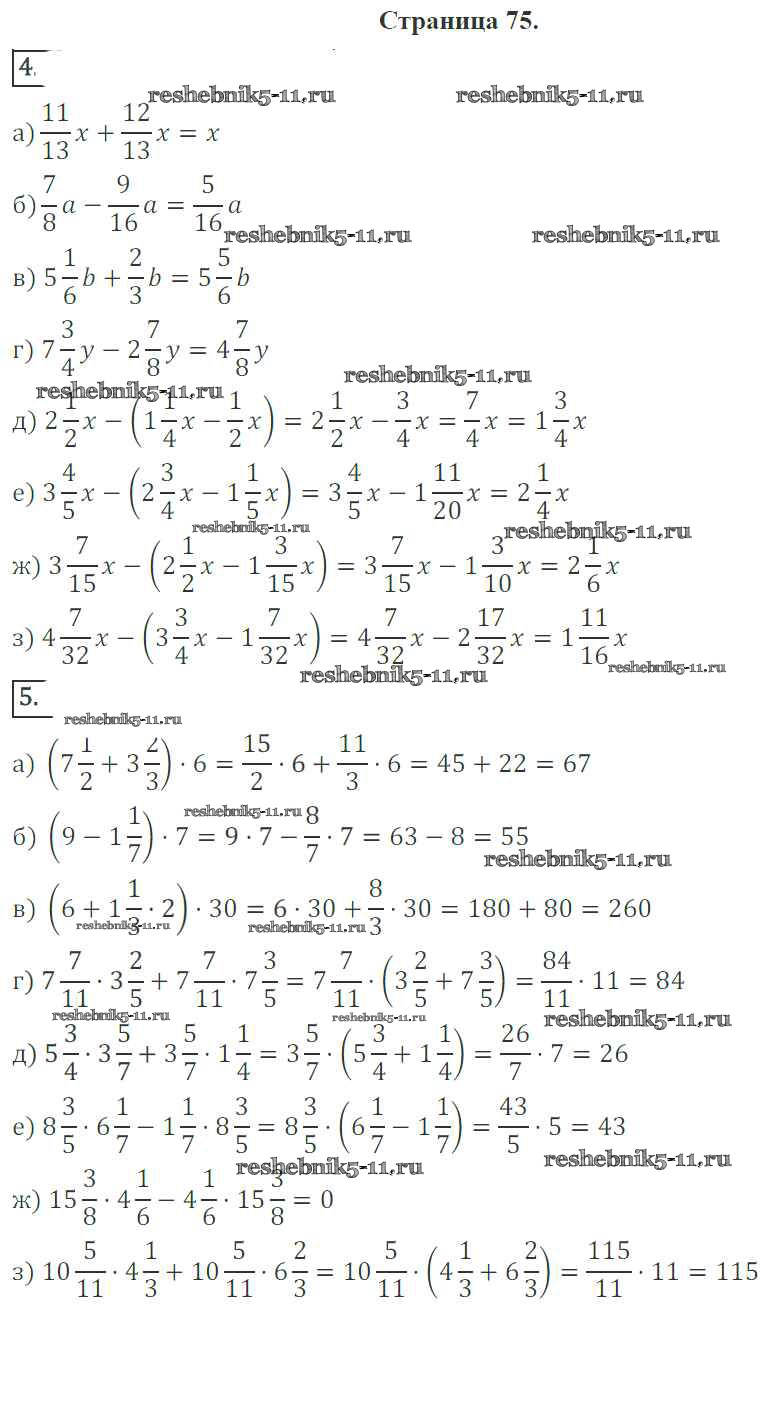 Готовая домашняя работа с ответами по Математике за 6 класс Ерина Рабочая тетрадь УМК Экзамен 2013 ФГОС - Страницы 75