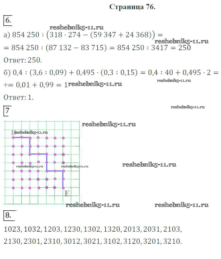 Готовая домашняя работа с ответами по Математике за 6 класс Ерина Рабочая тетрадь УМК Экзамен 2013 ФГОС - Страницы 76