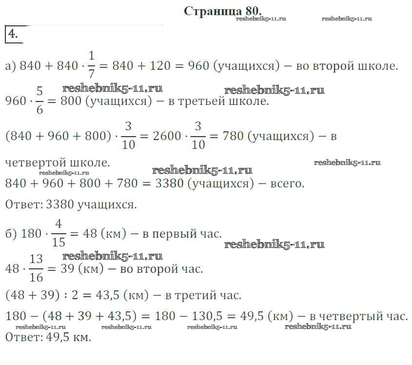 Готовая домашняя работа с ответами по Математике за 6 класс Ерина Рабочая тетрадь УМК Экзамен 2013 ФГОС - Страницы 80