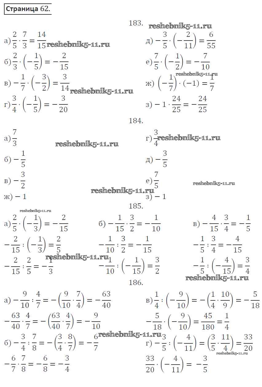 Готовая домашняя работа с ответами по Математике за 6 класс Потапов, Шевкин Рабочая тетрадь МГУ - школе Просвещение 2014 ФГОС - Страницы 62