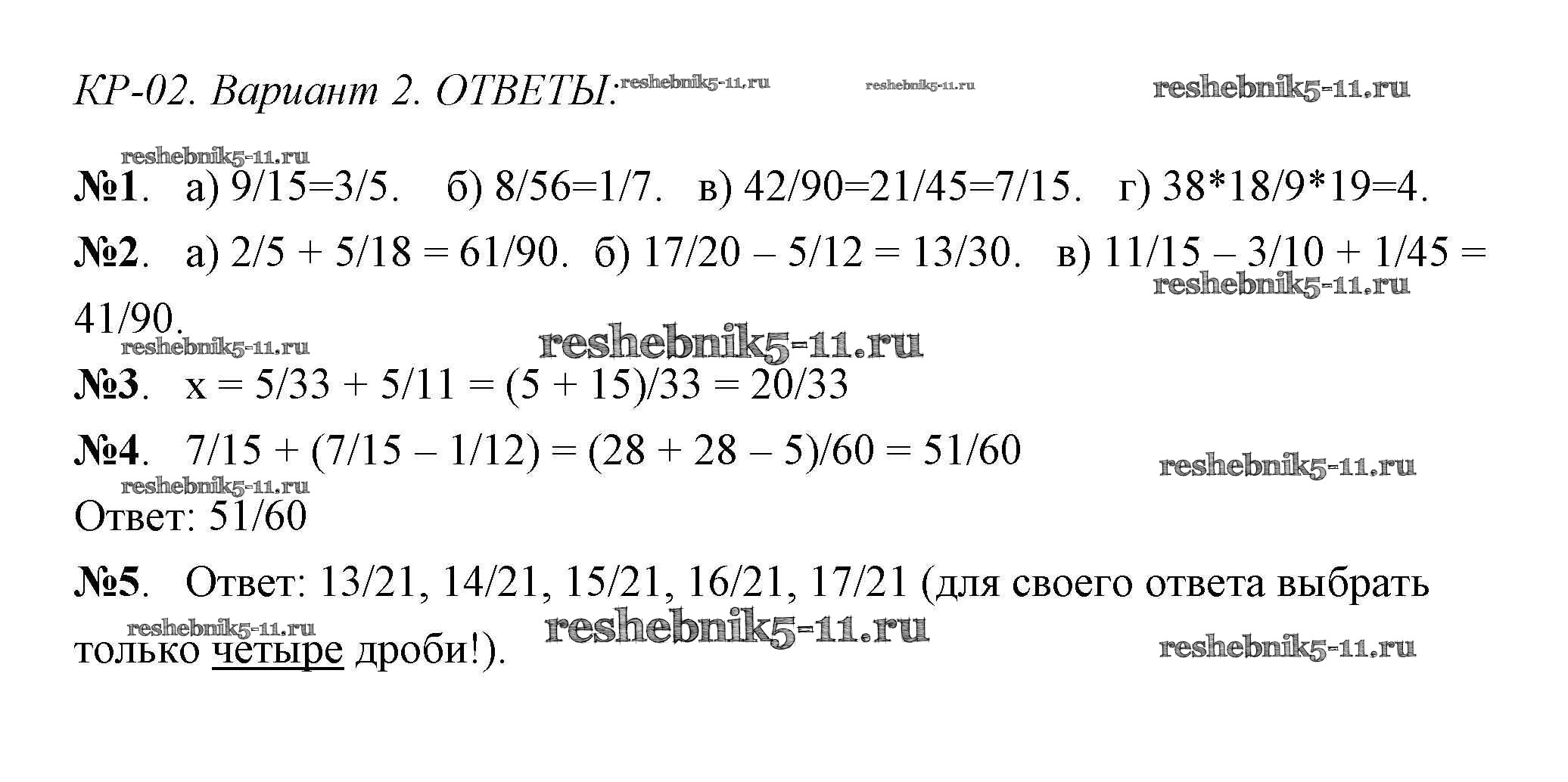 Готовая домашняя работа с ответами по Математике за 6 класс Попова Контрольно-измерительные материалы (КИМ) ВАКО 2017 ФГОС - Контрольная работа 2 (Варианты) 2