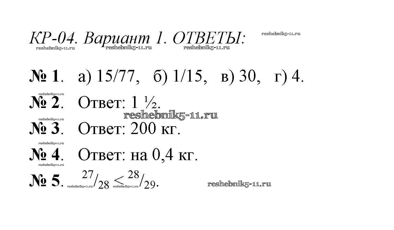 Готовая домашняя работа с ответами по Математике за 6 класс Попова Контрольно-измерительные материалы (КИМ) ВАКО 2017 ФГОС - Контрольная работа 4 (Варианты) 1