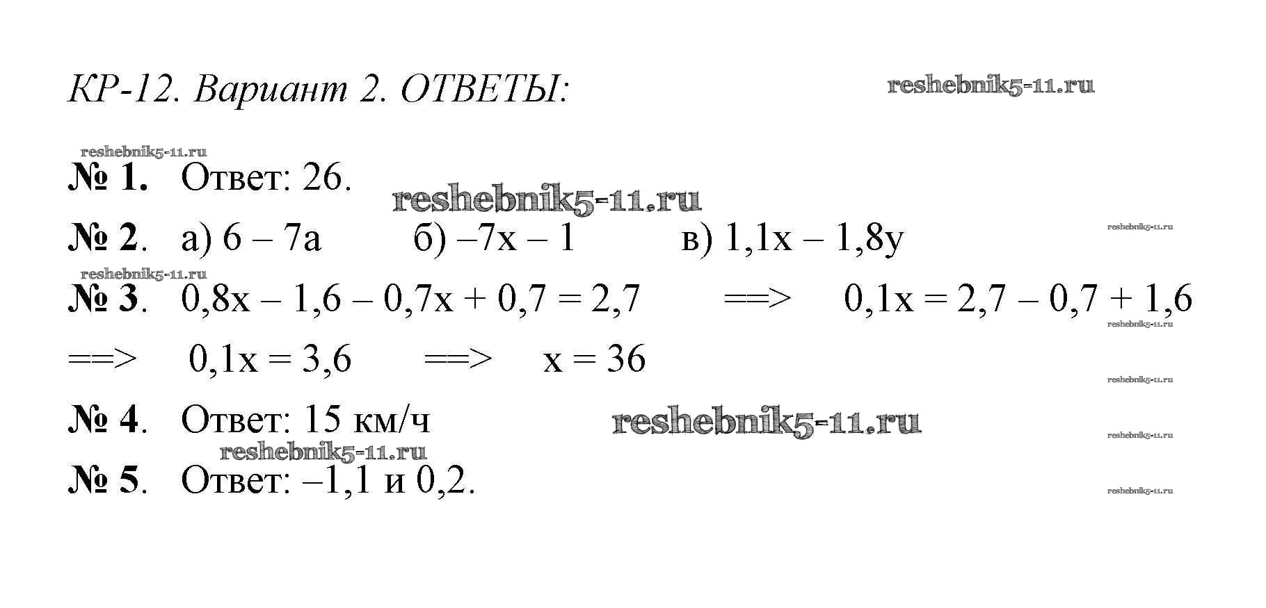 Готовая домашняя работа с ответами по Математике за 6 класс Попова Контрольно-измерительные материалы (КИМ) ВАКО 2017 ФГОС - Контрольная работа 12 (Варианты) 2