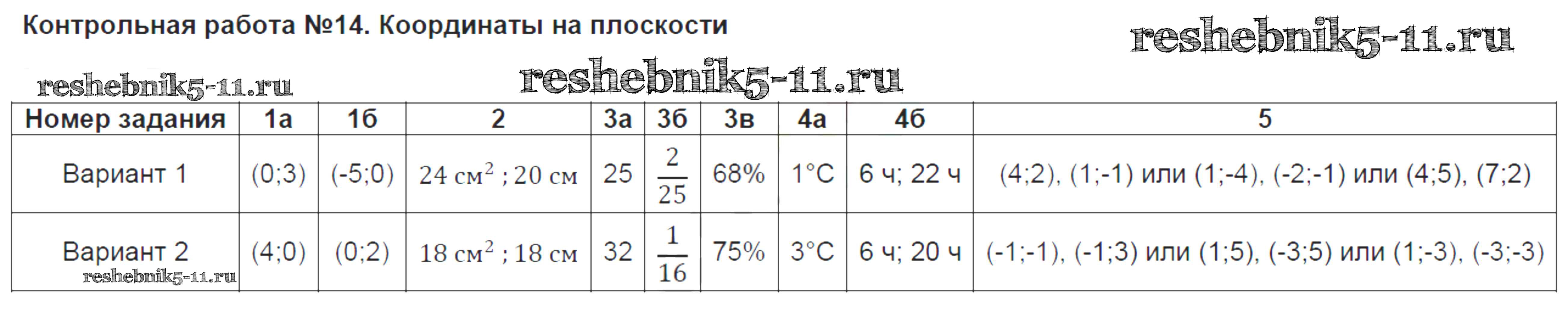 Готовая домашняя работа с ответами по Математике за 6 класс Глазков, Ахременкова, Гаиашвили Контрольно-измерительные материалы (КИМ) Экзамен 2014 ФГОС - Контрольные работы 14